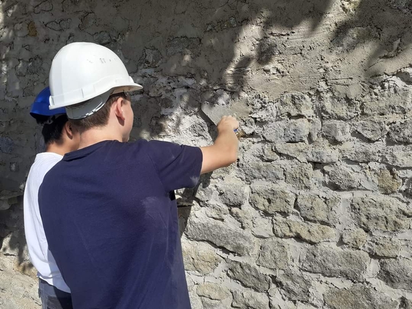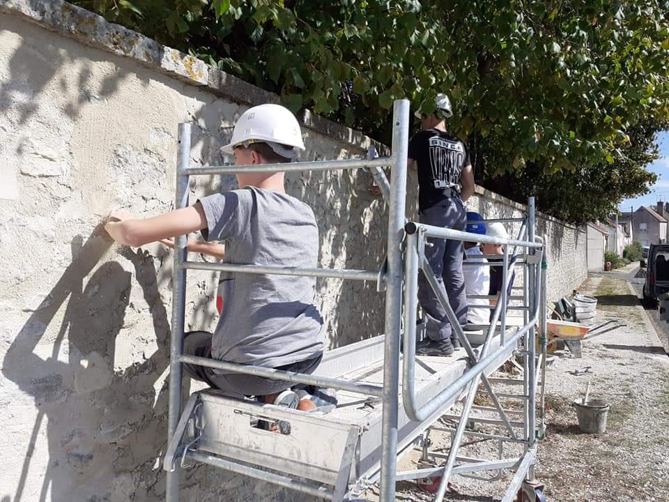 Fin du chantier-école au mur du Presbytère de Saint-Denis de l'Hôtel