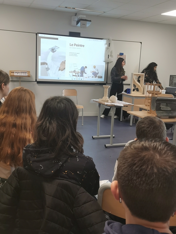 Jeudi 6 février, nos deux référentes du Bureau des Entreprises, Anne REGIEN et Béatrice MONTUSCLAT se sont rendues au Collège de Tigy avec Tiffaine Alexandre, une élève de bac professionnel AFB (Aménagements et Finitions du Bâtiment) afin de présenter nos formations aux collégiens. A cette occasion elle a pu nous montrer l'étendue de sa formation à travers des photos et vidéos de ses activités.