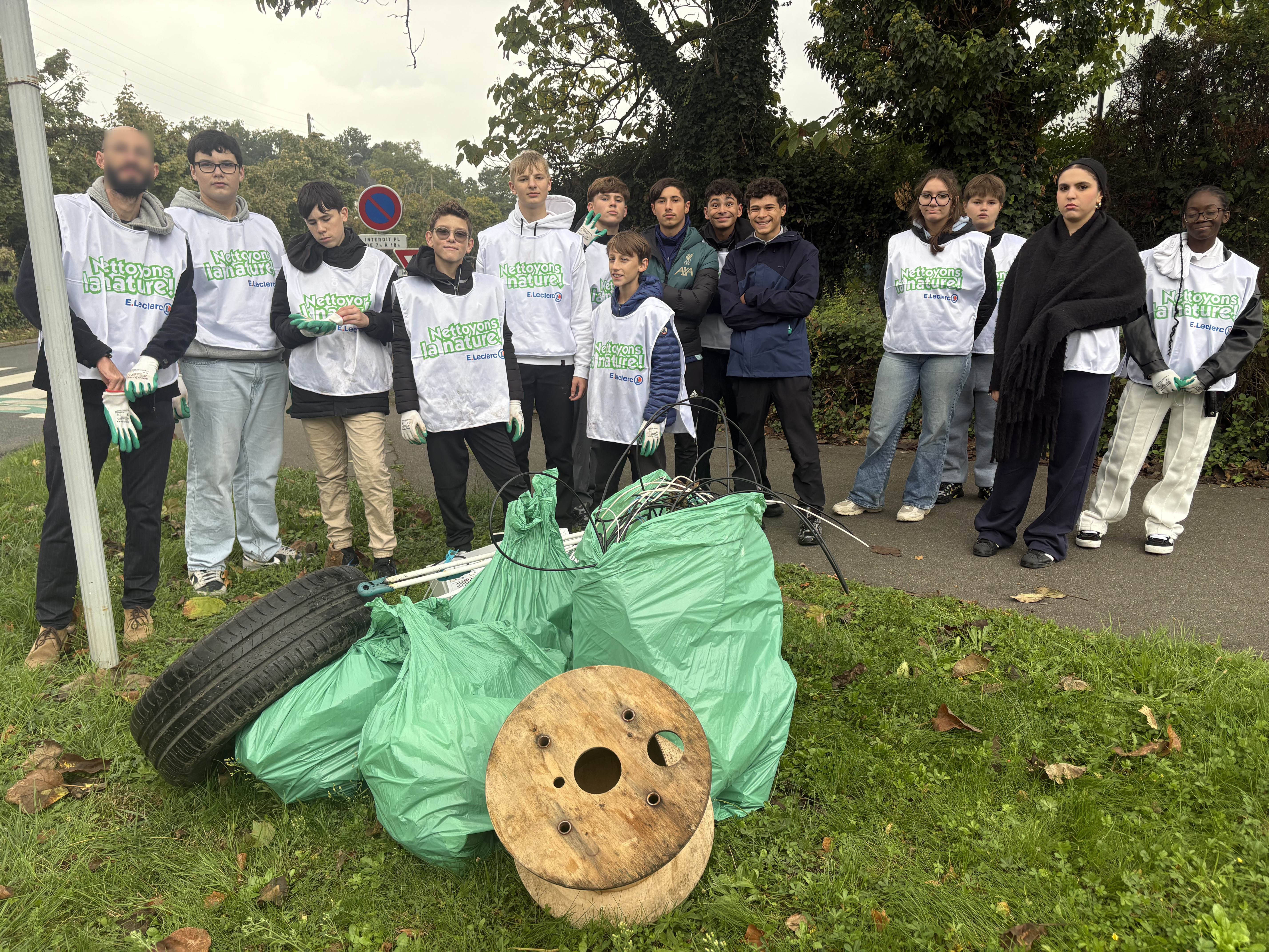 Vendredi 26 septembre nos deux classes de 3ème prépa métiers 1 et 2 ont arpenté Saint-Jean de Braye pour un nettoyage des quartiers aux alentours du lycée. Le dispositif était piloté par Mme Guillois et financé par les magasins Leclerc avec "Nettoyons la nature". L'occasion de prendre conscience des déchets divers et variés laissés par les gens et de l'importance de bien jeter et trier les déchets. Leurs efforts ont été récompensés par un goûter au lycée.