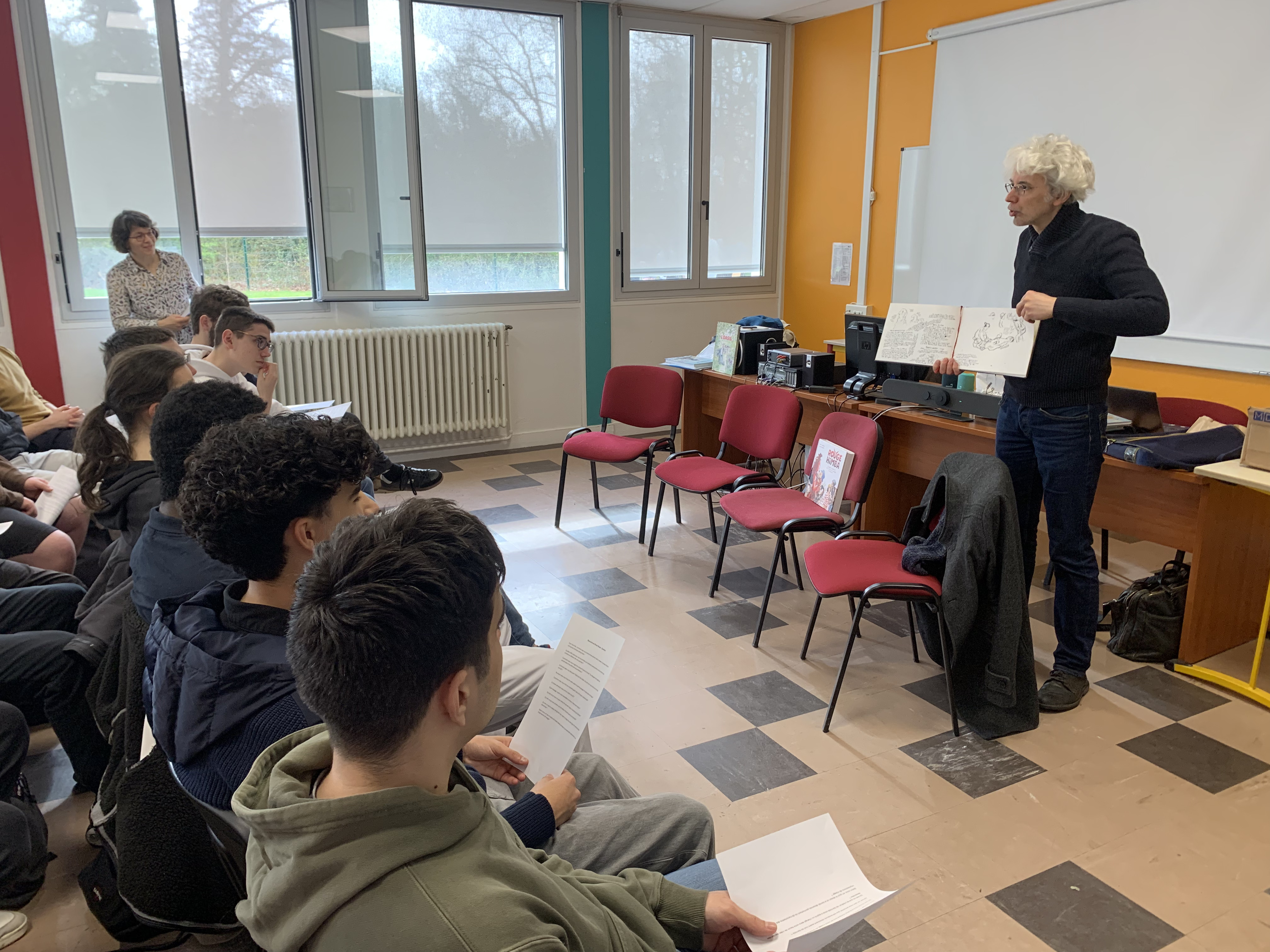 Le jeudi 12 mars dernier, dans le cadre du dispositif Lycéens, apprentis, livres et auteurs d’aujourd’hui (LALAA), de Ciclic Centre-Val de Loire, plusieurs classes de première année de BTS ont rencontré l’auteur de bandes-dessinées Simon Hureau.